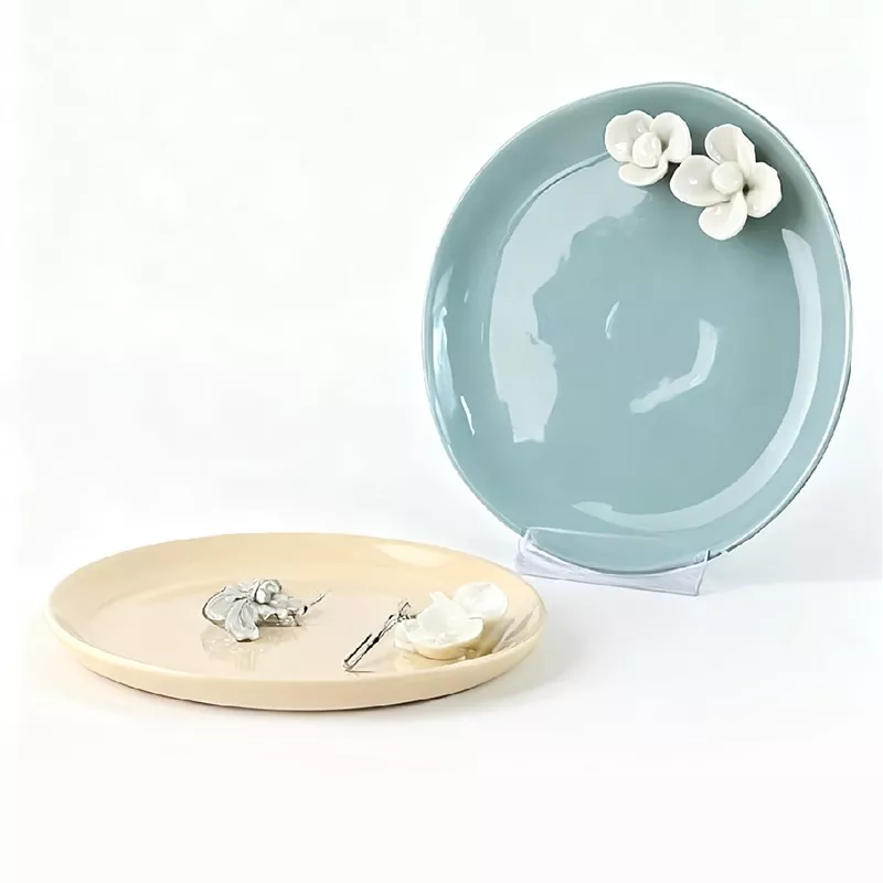 Nag -aalok ang Minimalist Insta Ceramic Alahas Dish ng iba't ibang mga kulay at disenyo ng bulaklak na pipiliin.